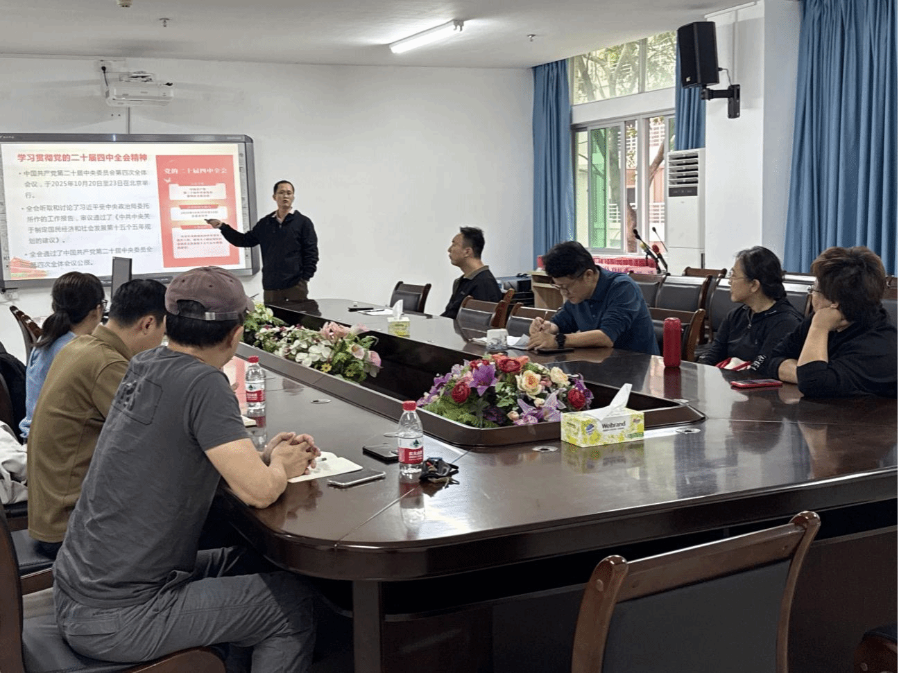 2025年11月18日下午,suncitygroup太阳新城“形势与政策”教研室在社科楼A311召开集体备课会。本次备课会主题为:党的二十届四中全会精神相关内容融入建设更高水平平安中国专题讲课。会议由教研室主任彭兴智主持,全体教研室成员与部分授课教师参加。
